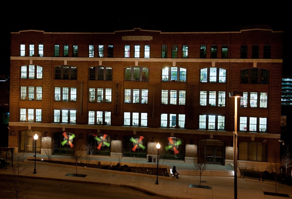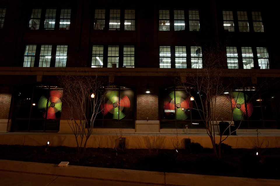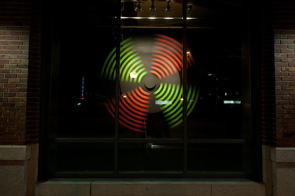 4 spinning ‘industrial air scrubbers’ are placed in the gallery windows of a building on a high traffic street. This installation addresses the ‘peace of mind’ that we maintain in our lives oblivious to the machines and industrial processes that keep our air and water safe from contaminants that we ourselves pollute our world with.