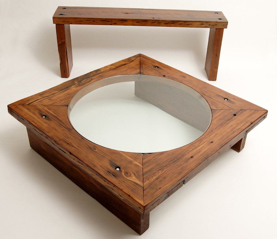 Reclaimed pine coffee table and bench