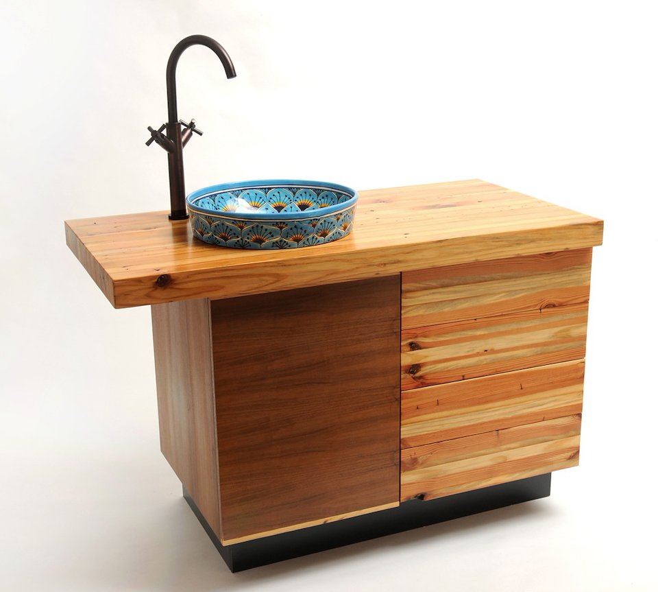 Reclaimed pine and walnut vanity