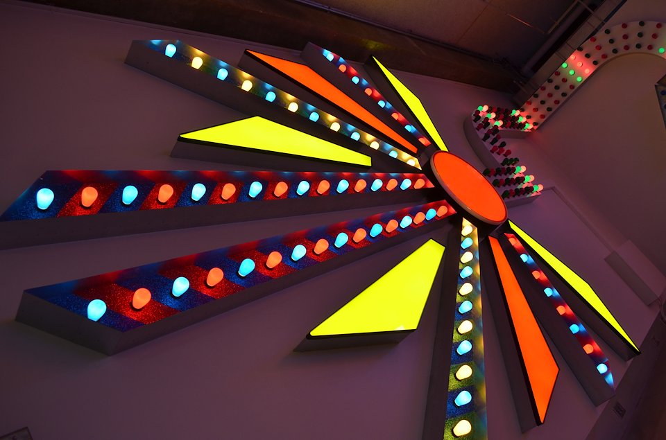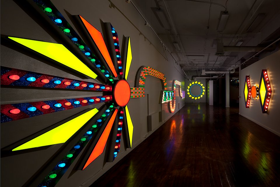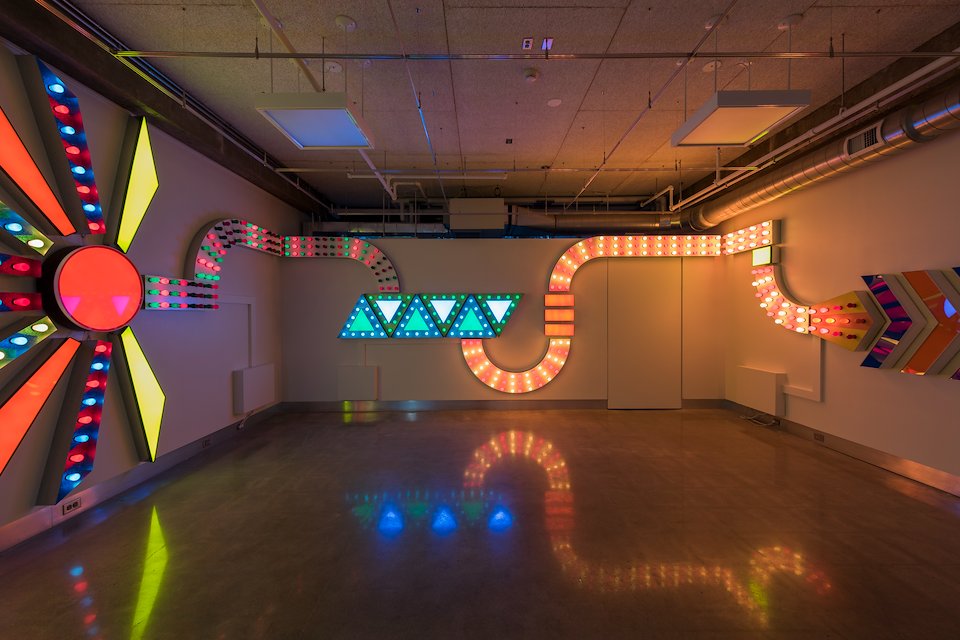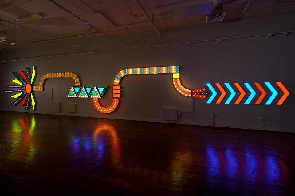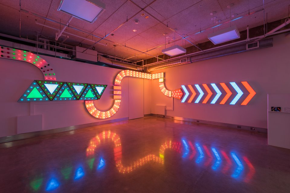 “The Serpent” is an installation designed originally for The Penn State Abington Gallery. The Fall 2017 show entitled “Integrated Carnival Energy Systems” is an experiment in creating multiple arduino controlled light systems that operate separately but work together to create the overall experience. At Penn State