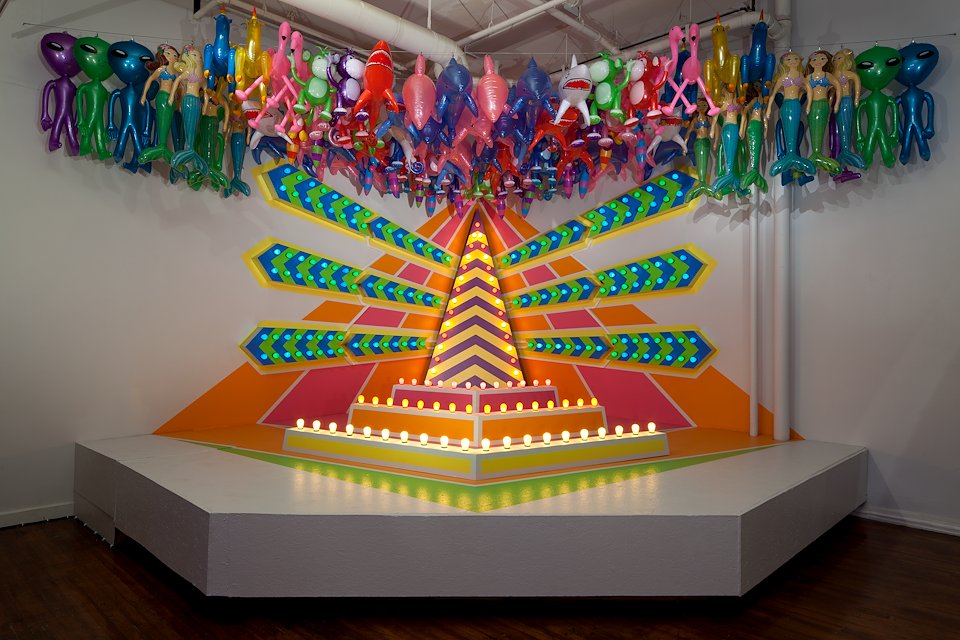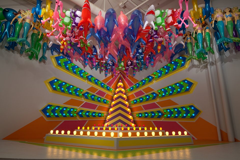 The installation references carnival game play and takes advantage of a pre-existing stage at Maryland Art Place to accentuate the unattainability of ‘the prize’. The piece attempts to demonstrate that despite our attempts to ‘play the game’ be it in the world of business, love, financial gain or even art, so many of our actions, working toward our goals, are futile attempts. ‘The game’ merely exists as a stage for those already in positions of power to watch those ‘beneath them’ struggle through a distracting set of actions that will ultimately provide no meaningful reward.